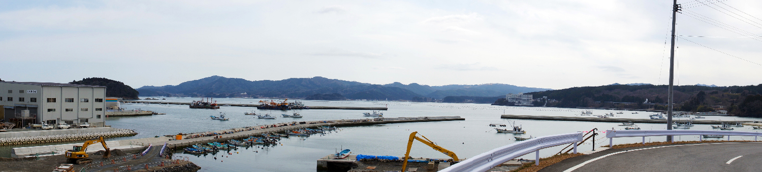 今回は海沿いの町しか訪れていませんが、総じて船・漁港に関しての機能はどこも復旧しているように見えました。海にはゴミ1つ浮いておらず綺麗なエメラルドの海はリゾートにも負けない美しさでした。湾にはイカダや養殖の漁具が多くまさに海産ありきの町だなと。