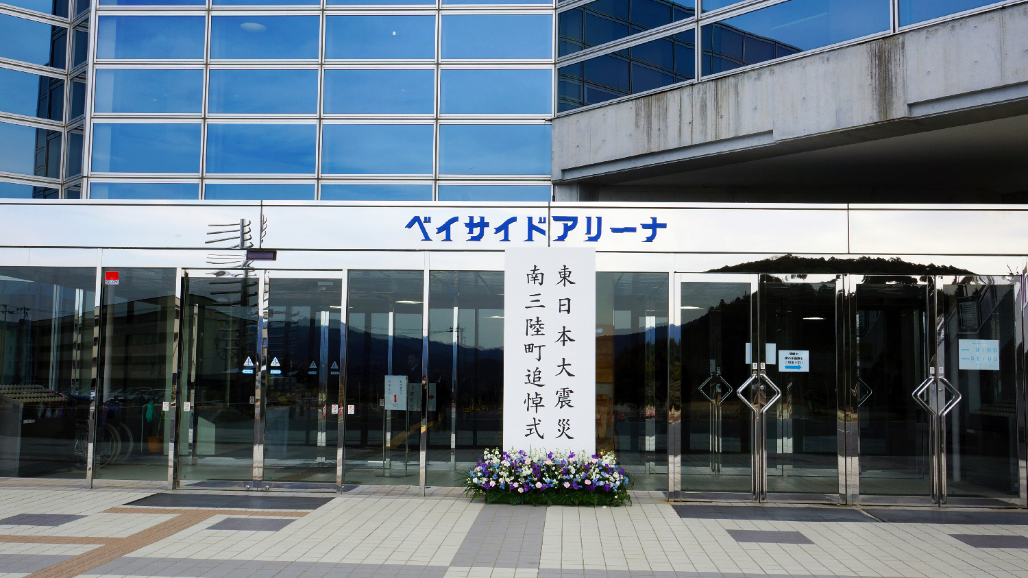 南三陸町のベイサイドアリーナで行われる追悼式へ。