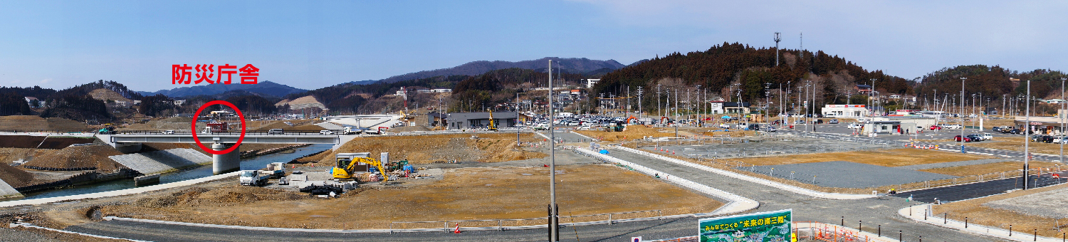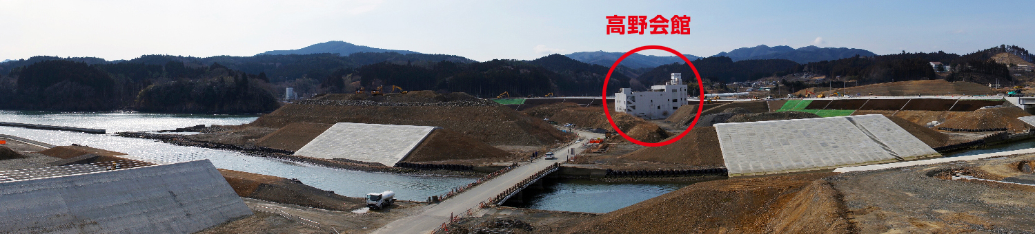 残っていたのは、「防災庁舎」と330人を救った「高野会館」だけであった。震災当初は全てが流され平地同様だったこの地は区画ごとに堤防で囲まれた街へと設計されているようでした。