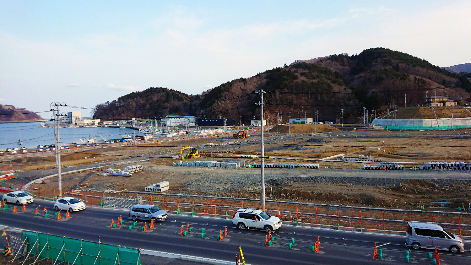 本当はどうなのか・・・綺麗な道路が整備された1本道を石巻から向かっていくとインフラは整っているようだった。女川医療センターの上から見たパノラマは今。。