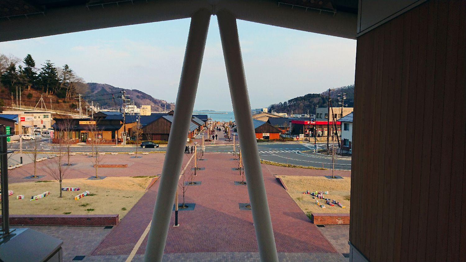 駅は綺麗に建てられ、駅前には海に向かうように作られたショッピングモールがあった。駅からは港が見渡せて、足湯もある。電車の線路も元通り、当時壊滅的だった山の墓地も綺麗に直されていた。