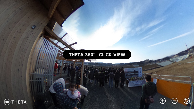 先ほどベイサイドアリーナの厳かな雰囲気とは逆で、良くも悪くも休日の”道の駅”のような雰囲気である。TVの中継が入り。防災庁舎に向けて献花台も設置されている。