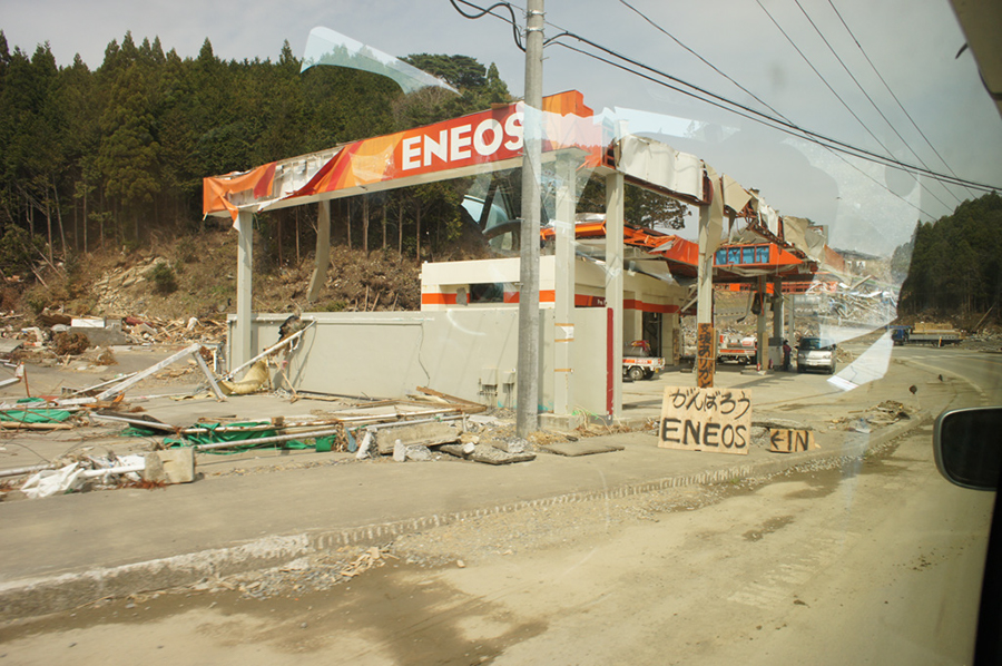 当時のボランティアメンバーにしかわからないかもしれない”歌津のエネオス”、海沿いで半壊滅状態であったこのスタンド。