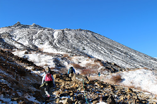 登山ルートは、わかりやすいが岩も多いので、ブーツはしっかりしておきたい。