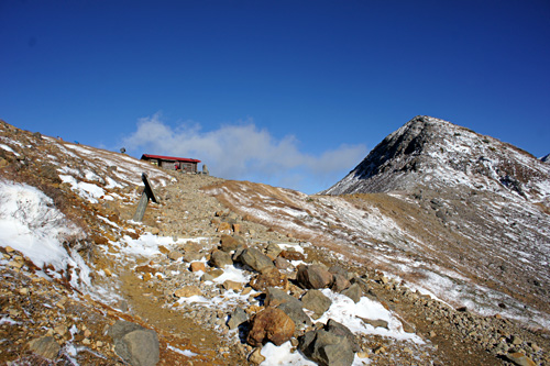 登山口から1時間程度で、避難小屋へ。