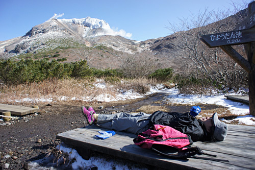 池までは木道だが、残念ながら凍結もしてなくわりと地味な水たまりだった。