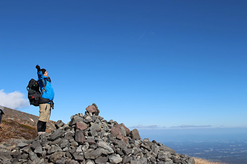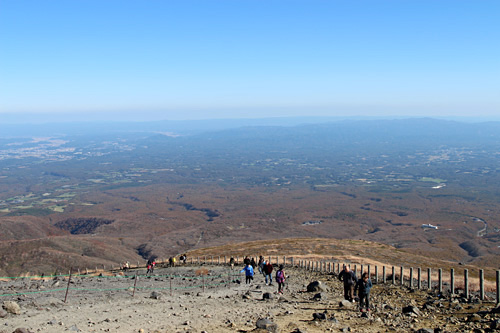 登り切るとまた風が出るが朝ほどではない、目の前には那須高原を一望できる、これもまた良い展望で気持ちよい。