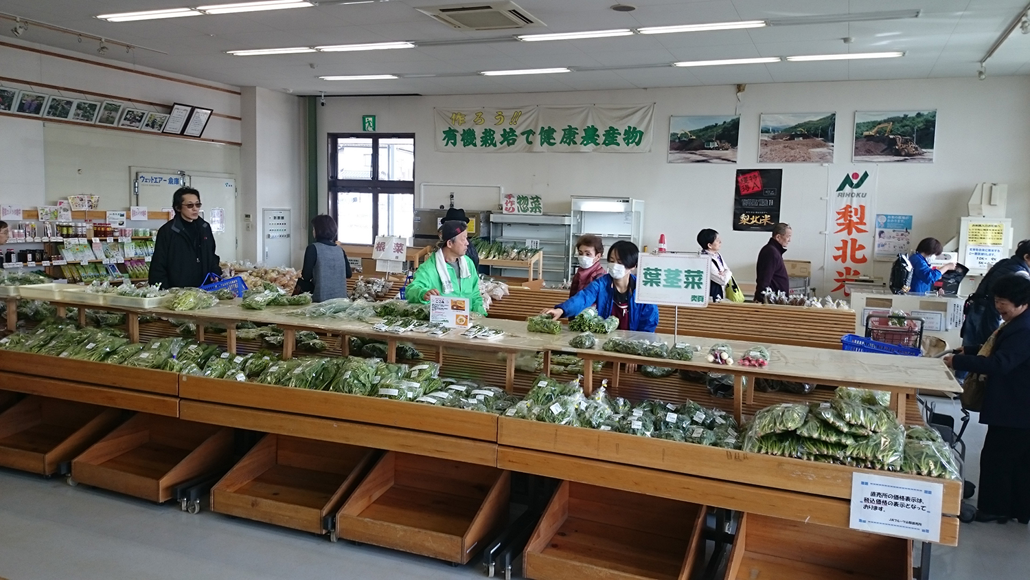 仕方ないので、地元っぽいスーパー「おかじま」へ。向かう途中、野菜放浪者の我々は野菜なんて…とダメもとでJAフルーツ山梨へ。これがとんでもない誤算で、地元野菜を扱っていた。