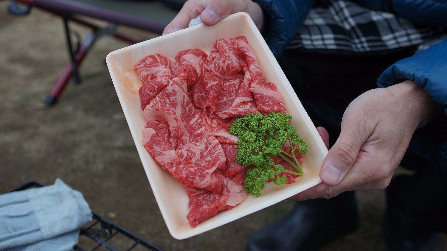 夕方になると一気に気温は下がり10℃以下に、スープで温まりながら、本格的な焚き火を開始。