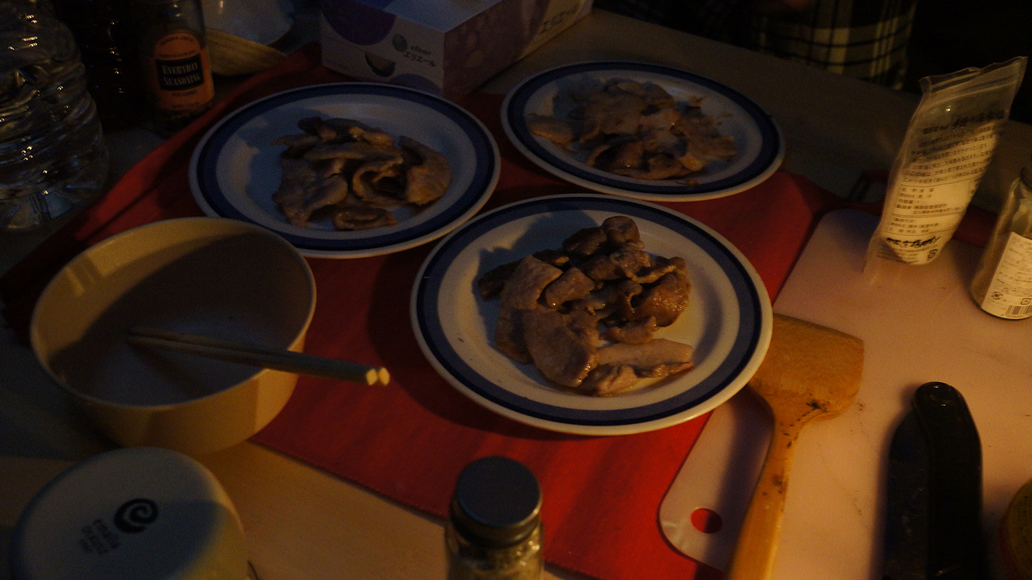 本日の肉は、あえての薄切り。霜降りしゃぶしゃぶ用をサッと炙って食べるという贅沢。網やアルミホイルを試したが、こびり付いてしまったので結局フライパンでw・・こういうのも経験ですなぁ。