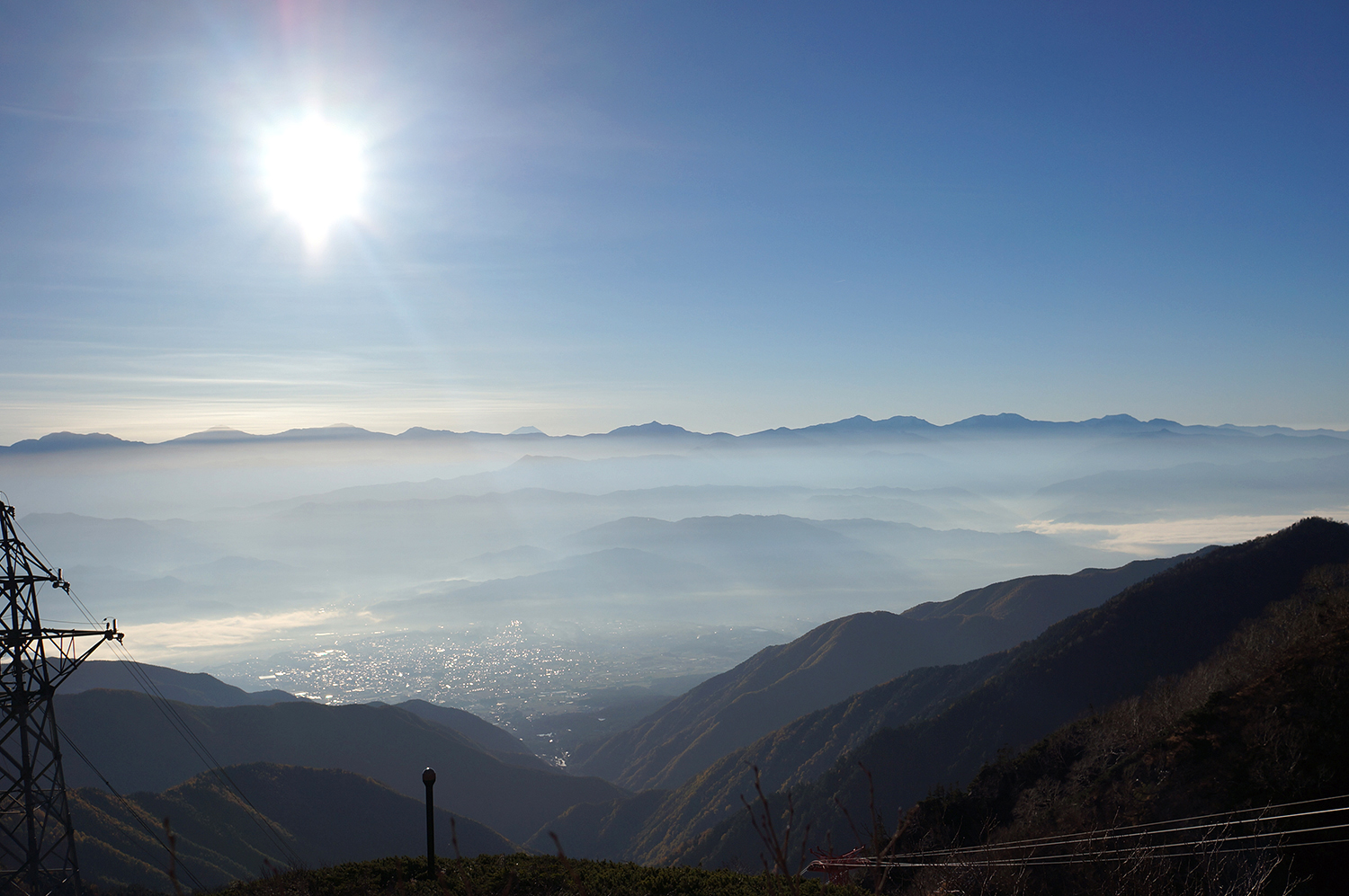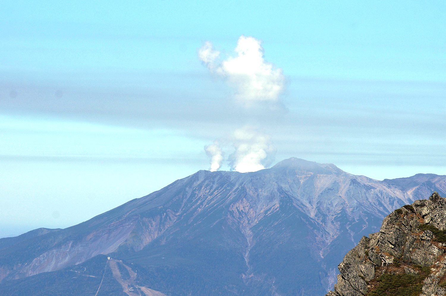 目に見えている御嶽山が、小指の幅くらいなら、同じくらいの大きさの噴煙が立っている。噴煙だけでも1,000m以上吹き上がってるのがわかる。この光景を他の山と相対的に見ることで本当に凄い規模の事態だということを確認できた。