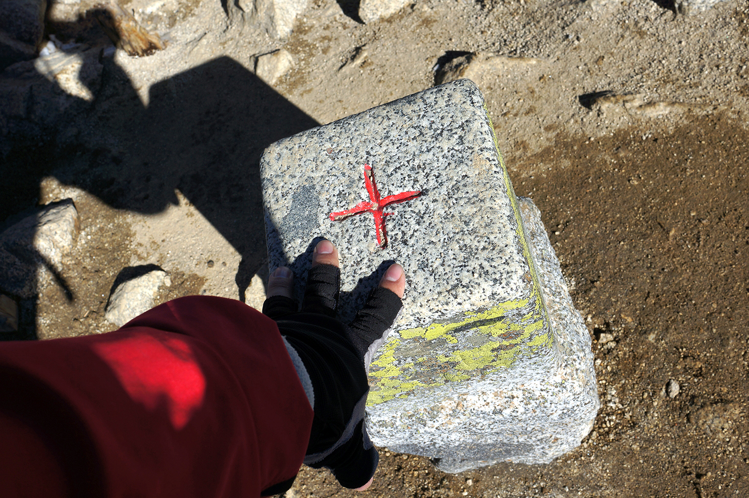 なんとかタッチだけして杭を掲げて撮影をお願いした。