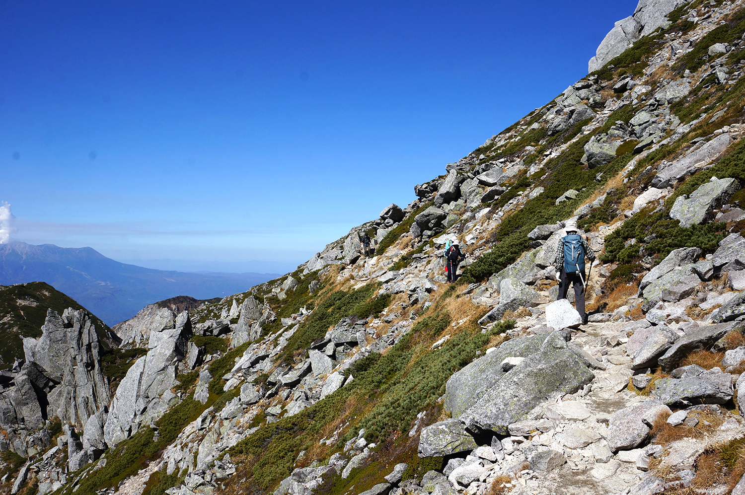 御嶽山と同じ3,000m級の山ではすぐとなりにある山。中央アルプス最高峰の木曽駒ヶ岳からは先日噴火した御嶽山を見ることができる、TVなどで報道はされているが、どんなものなのかこの目で確かめたいと思った。また捜索・救助の方がどんな気温や環境で頑張っておられるのかを体感して自分の中に焼き付けてしっかりと理解してこようと。